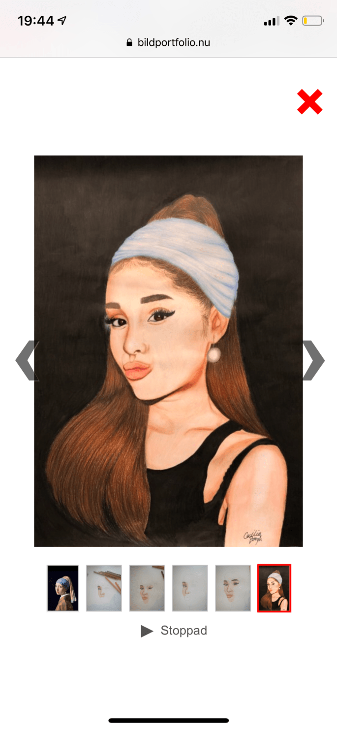 Så här kan det se ut när alstret ”parafras” är uppladdat i bildportfolio. Originalmålningen, skisserna under processen och slutresultatet.