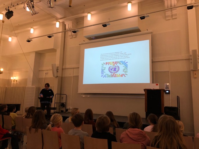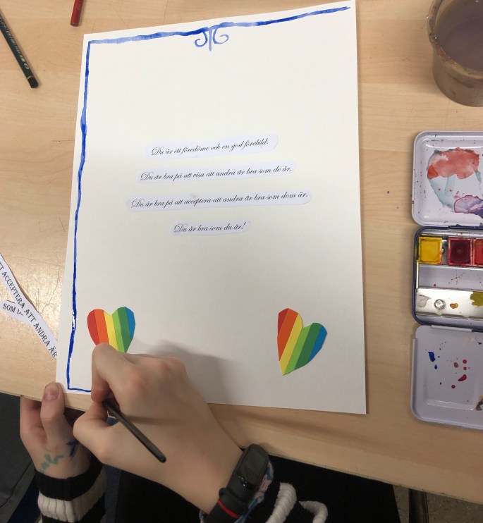 Nu har alla BildFilmDesign-grupper lyssnat till biträdande rektor i aulan som berättat om vårt värdegrundsarbete på skolan Du är bra som du är! samt om att barnkonventionen som blivit lag i Sverige 2020.