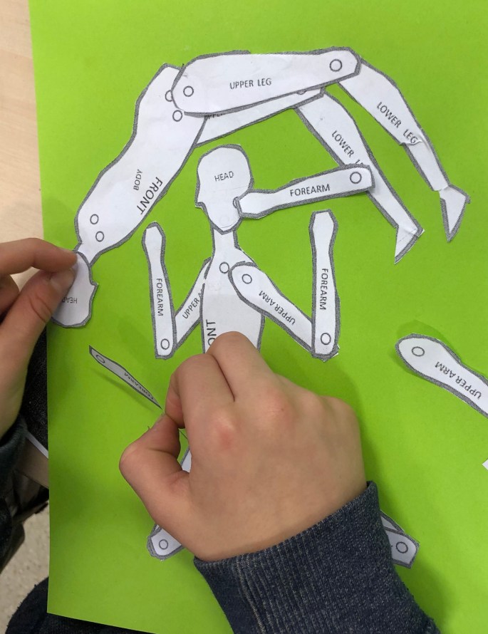 Uppgiften är att skapa bild av och med kroppsdelar tex tummen, hakan osv