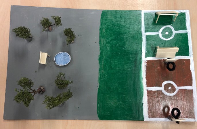 Här kommer design-åttornas skolgårdar. De fick två lektioner medan femmorna fick en.