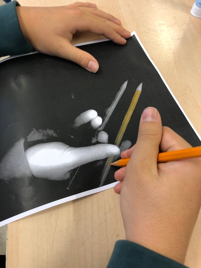 Idag kopierar vi våra händer och lägger till en kreativ touch! Vi ska sen teckna händer med olika blyertspennor i HB-skalan.