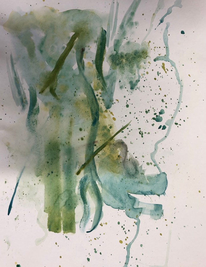 Plötsligt händer det. Bildsalen fylls av vuxna människor med mer eller mindre vana att skapa. En trevlig eftermiddag med olika stationer. Akvarellmålning, spegelmonotopi och en gemensam klotterduk.