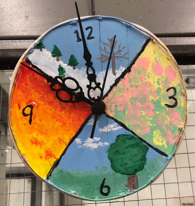 5BFD: Träslöjdsgruppen har gjort väggklockor!